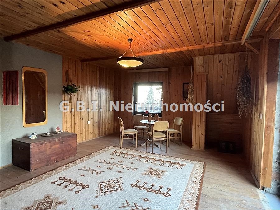 Wnętrza wykończone drewnianą boazerią. Okna zostały wymienione na nowe PCV.
