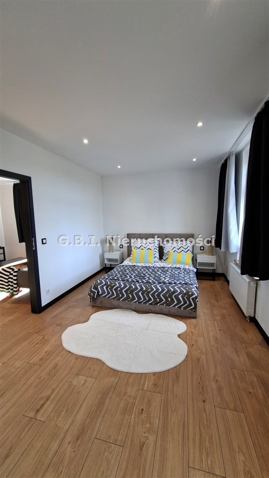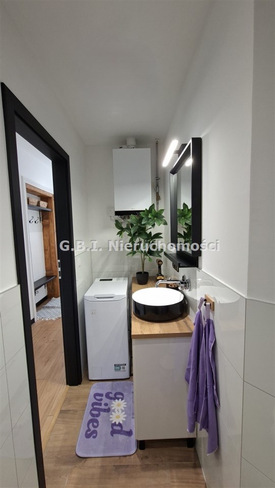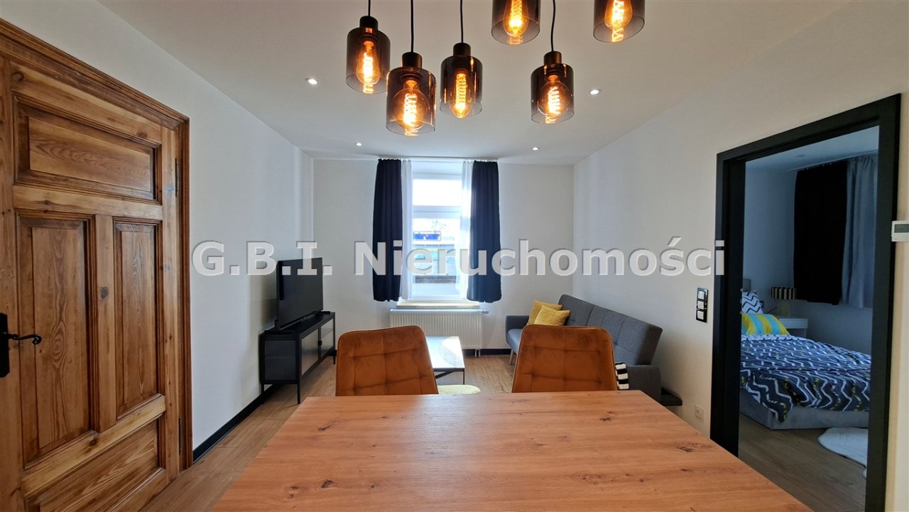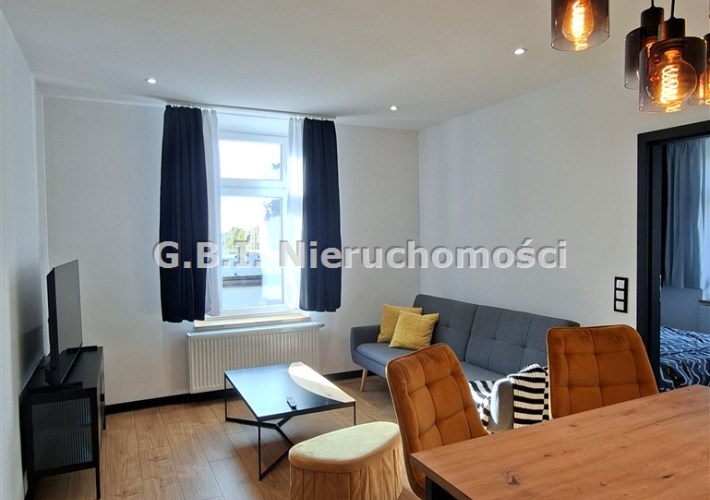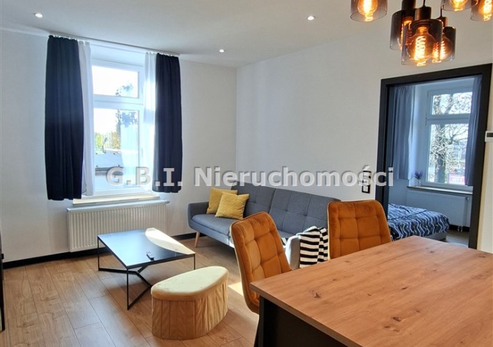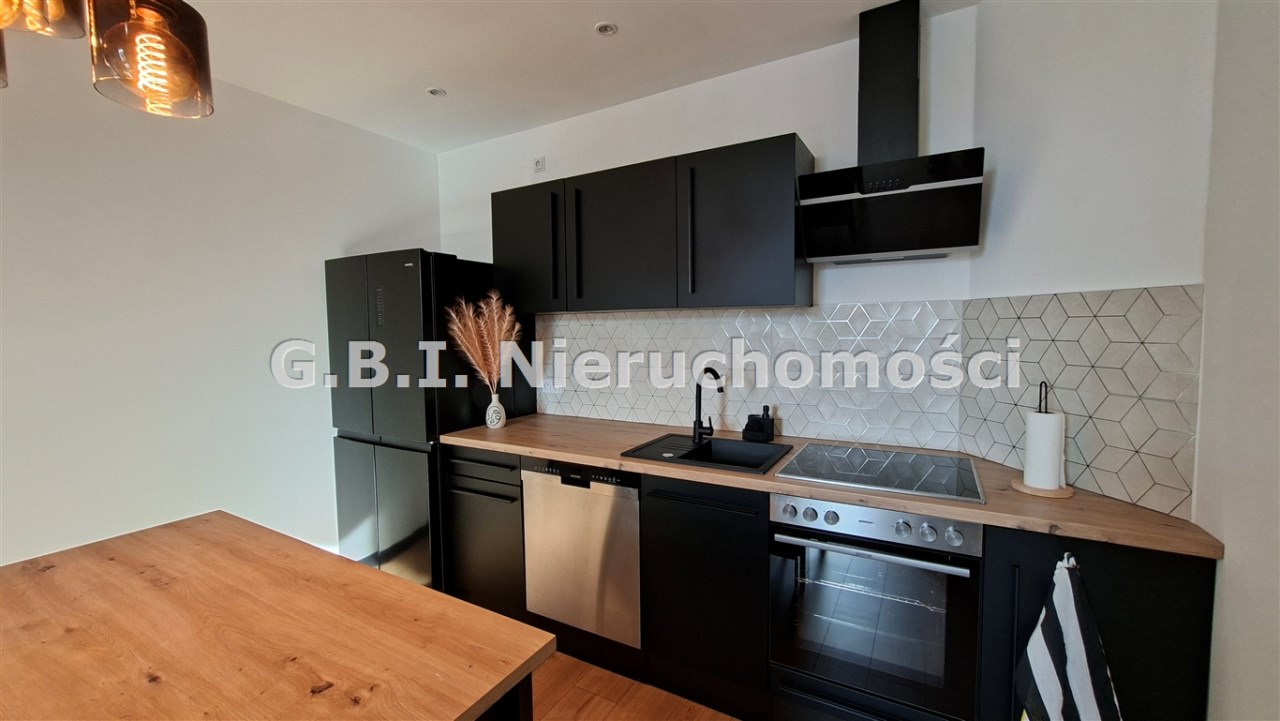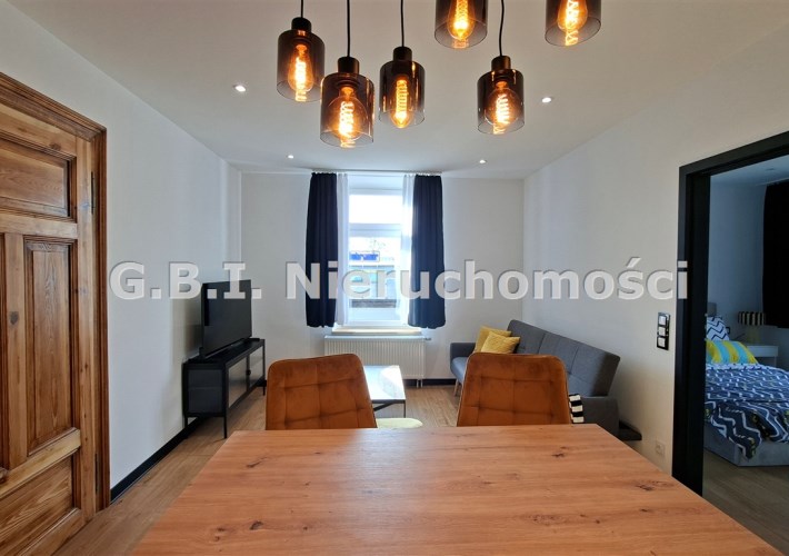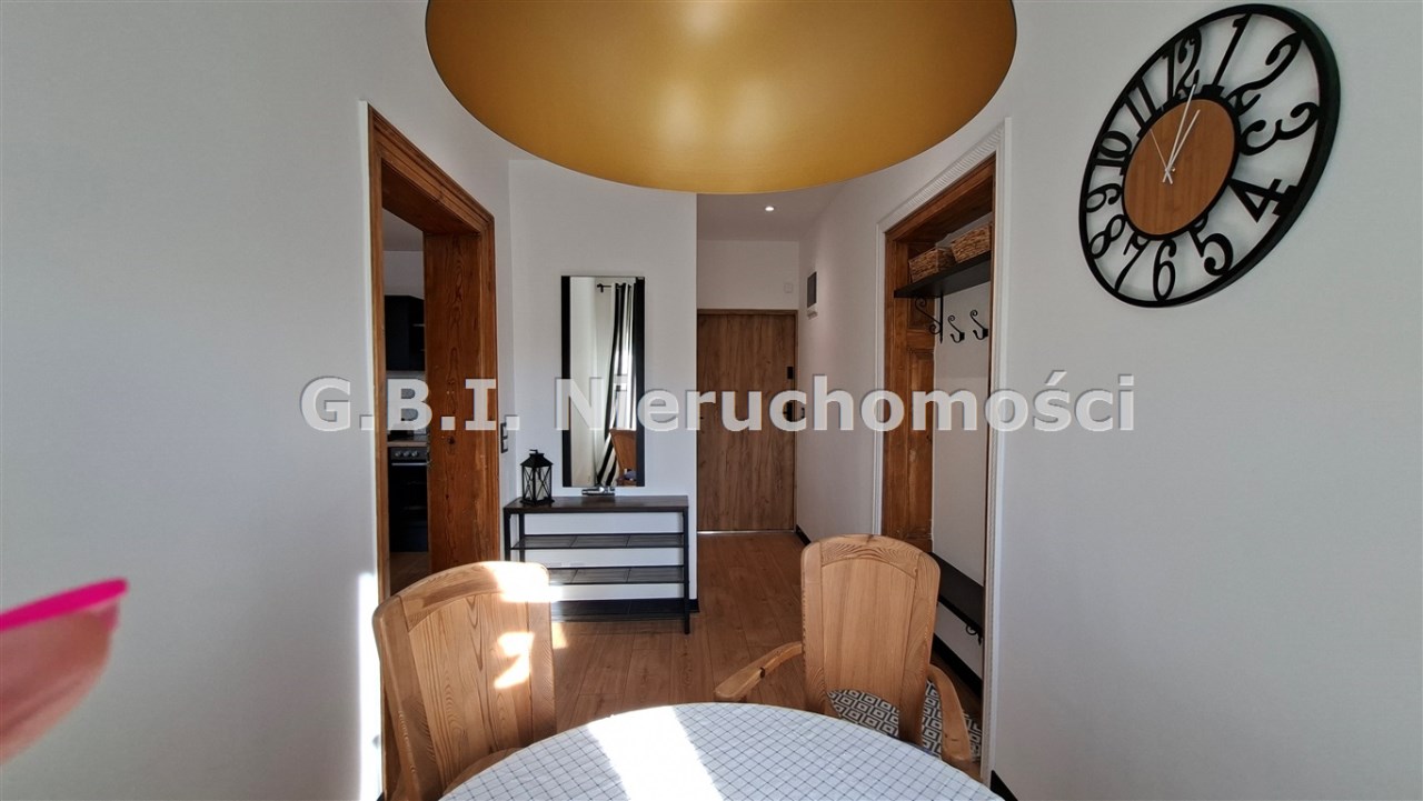 Mieszkanie jest po generalnym remoncie, przepięknie wykończone i umeblowane. Składa się z salonu z wyposażonym aneksem kuchennym, sypialni oraz jadalni i łazienki. Kuchnia wyposażona jest w zmywarkę, pralkę, piekarnik oraz dużą, dwudrzwiową lodówkę. Teren wokół budynku ogrodzony, dużo miejsc parkingowych.